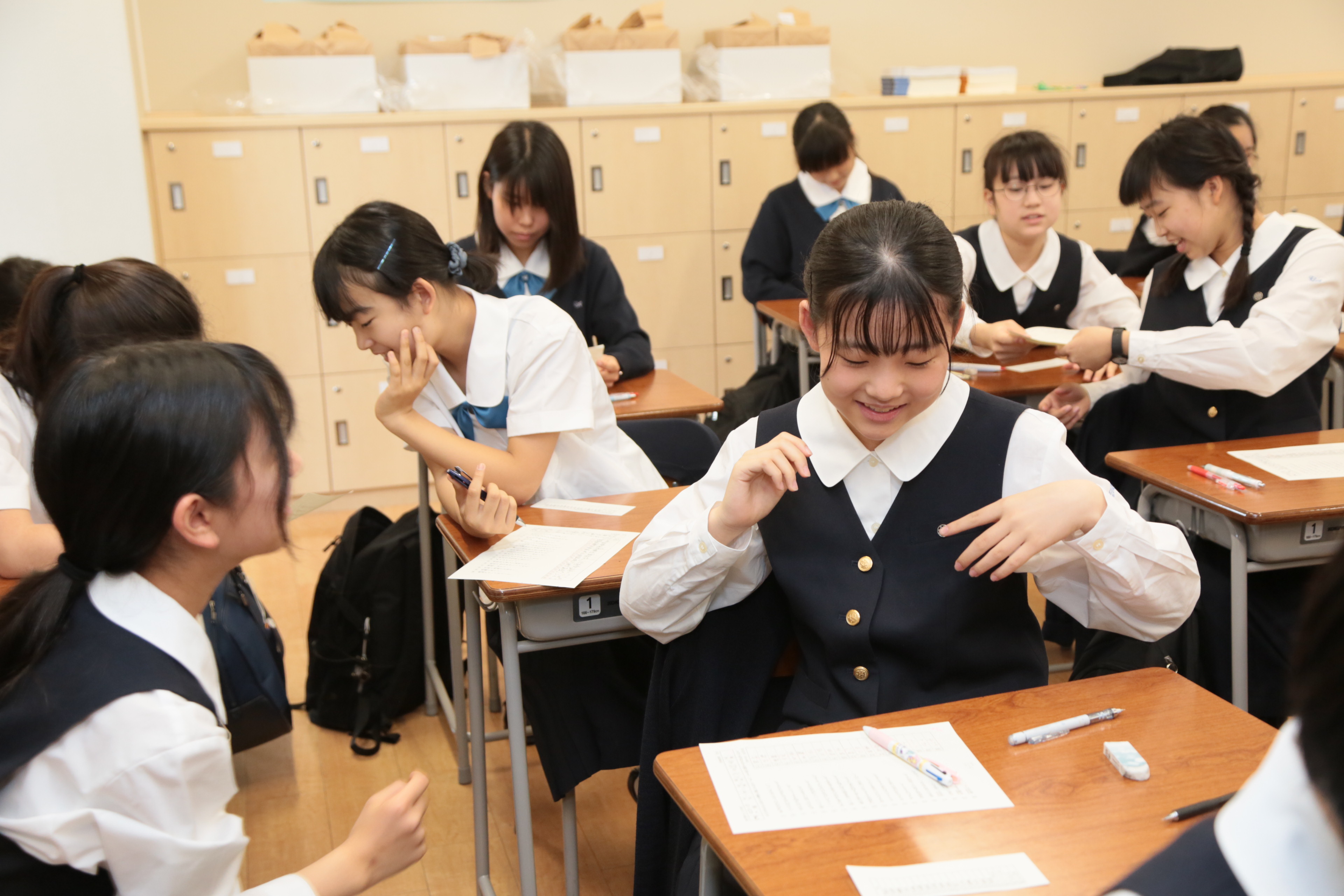 中高6年間を3つのブロックに分け、特に中1・2で は主要5教科に時間を割き、基礎学力の定着を図りま す。授業の進度は英・数では中3で高校の内容に入る など、高校課程の先取り学習をしている教科もありま す。外国人講師による英会話の授業は、クラスを半分 に分けて実施。生徒一人ひとりの理解度に合わせたサ ポートにも気を配り、成績不振者には指名制の補習も 行います。全学年で週1時間ある「宗教」の授業では キリスト教の基本を学びます。また、金曜7時限の「特 別活動」の時間には、「アッセンブリ(全校集会)」「礼 法」「ロングホームルーム」などが行われます。